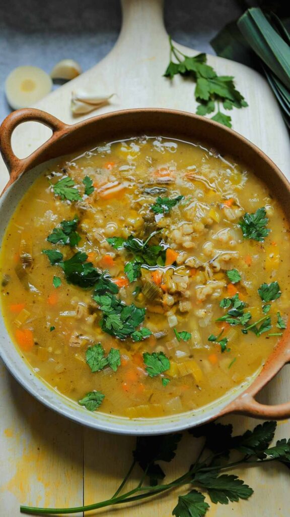 Pearl Barley Soup with Leek & Potatoes is a bowl of autumn comfort that even my little ones enjoy. The tender barley adds a gentle nutty bite, while soft potatoes and leeks blend into a creamy, soothing broth. It’s an easy, filling soup for busy weeknights. My kids love to help stir it, and I think yours will too!